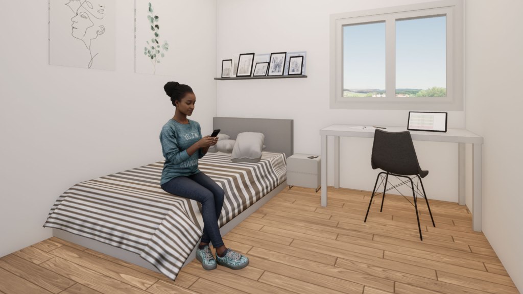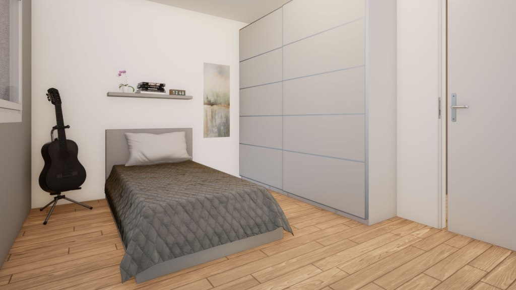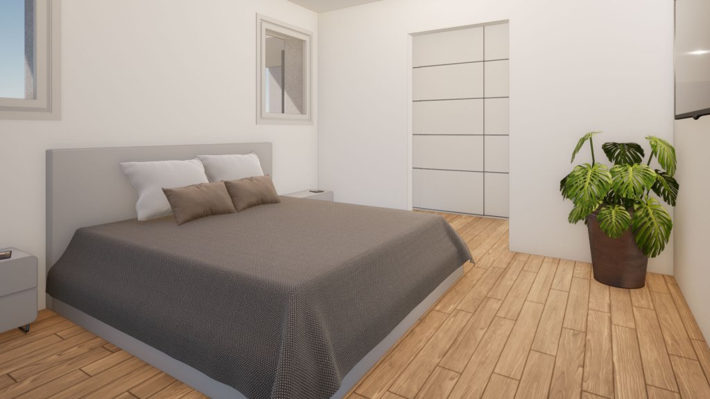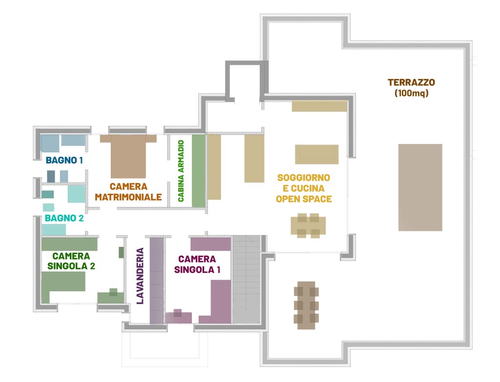 L’attico, oltre all’ampio open-space, prevede tre camere di cui una dotata di bagno privato e cabina armadio, un secondo bagno ed una lavanderia.